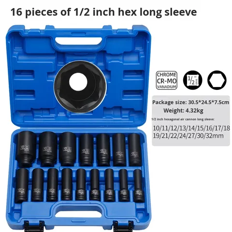 مجموعة سداسية الإطار ذات رأس ممتد تعمل بالهواء المضغوط كهربائي رأس تأثير بوصة أداة مقبس للخدمة الشاقة