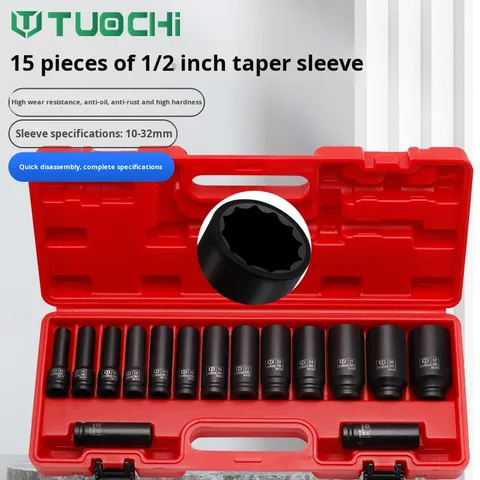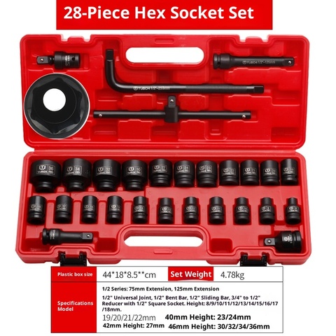 طقم سوكتوجع صناعي من 12 قطعة ، وصلة هوائية كبيرة عازمة ، مفتاح ربط قضيب سداسي