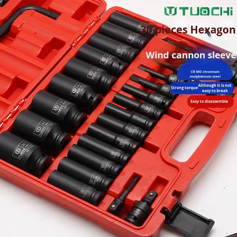 طقم وجع بتشطيب كروم صغير بتأثير الهواء مع أكمام سداسية ممتدة 12 زاوية
